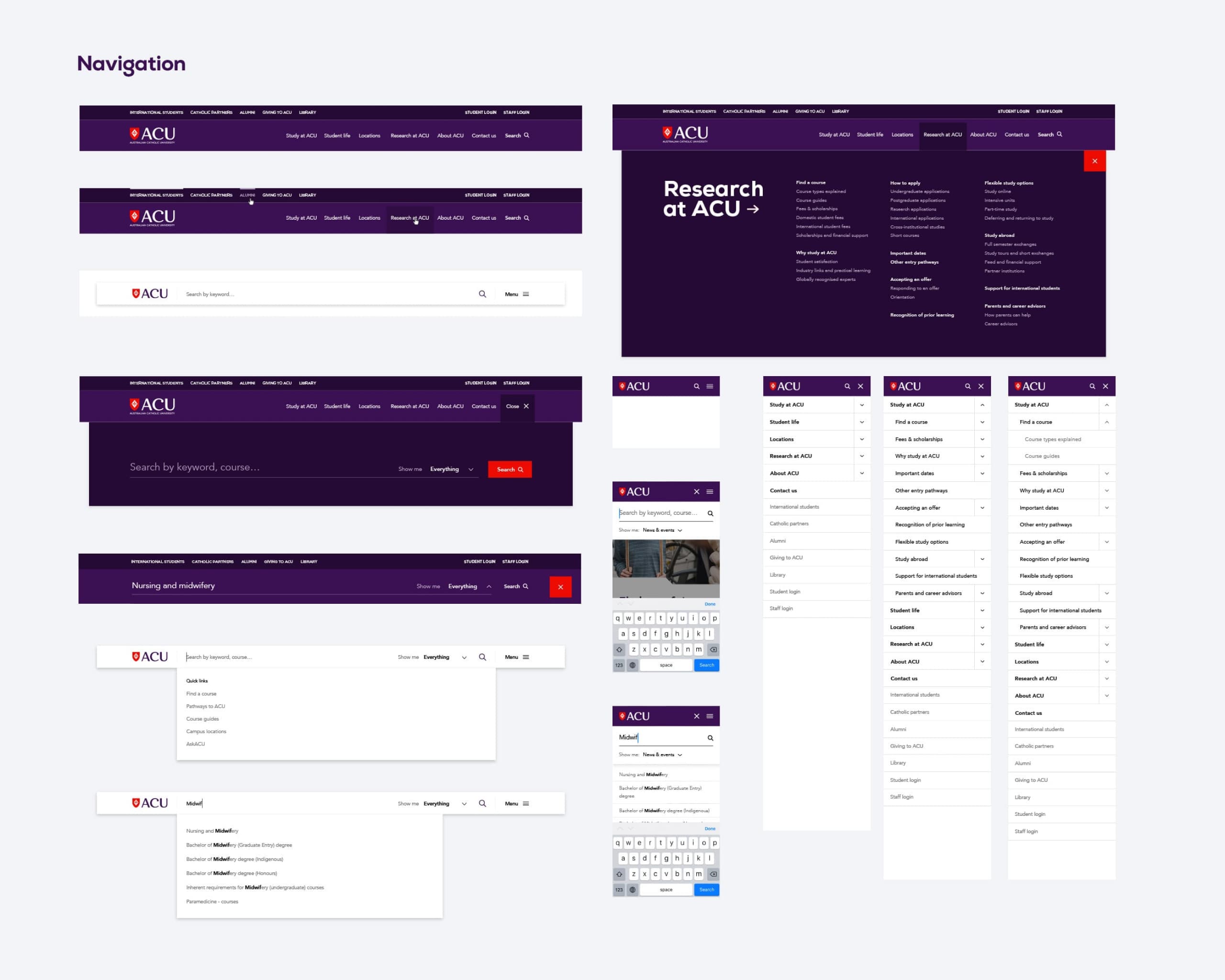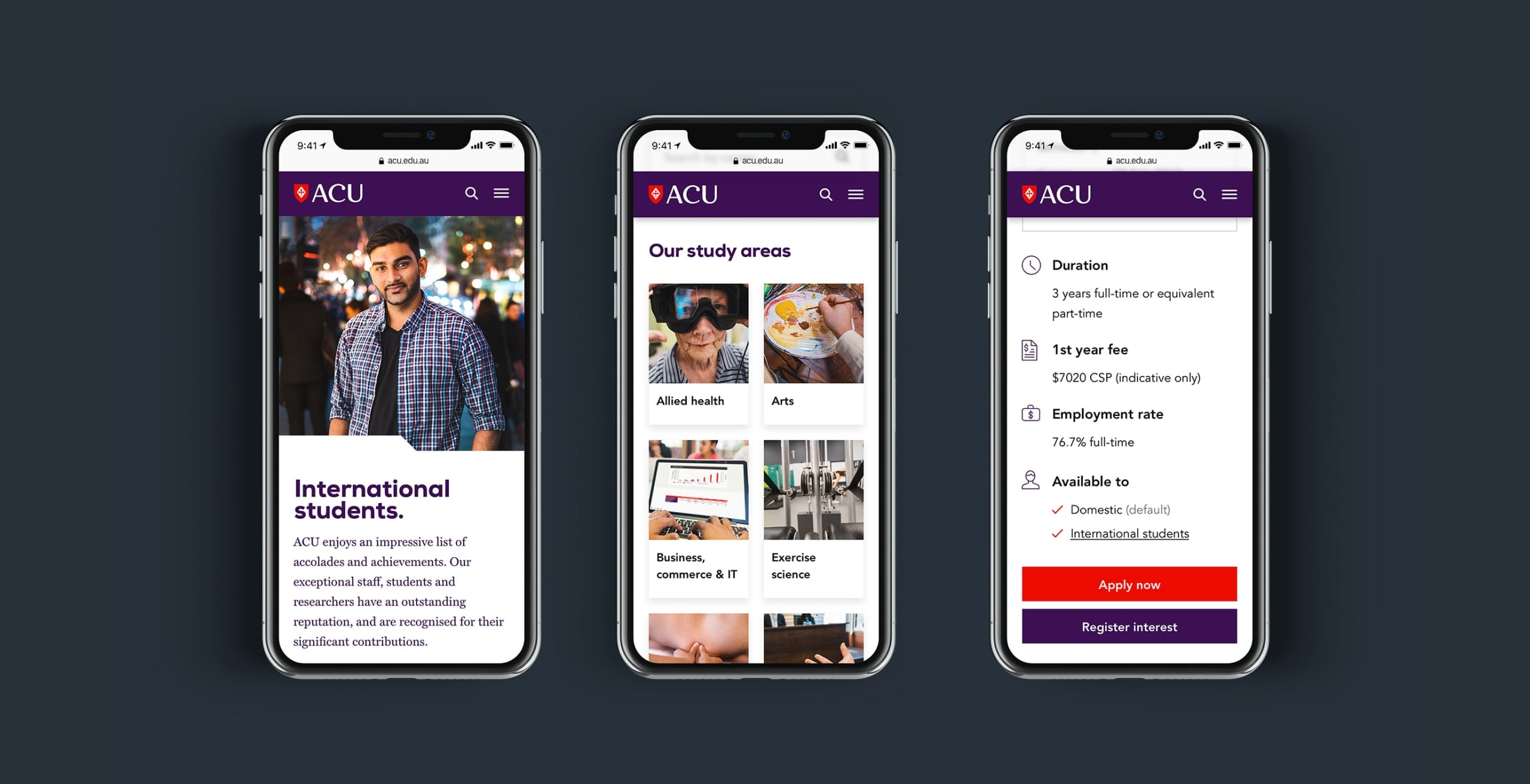 Australian Catholic University stands for meaningful education, rewarding research, and life-changing community engagement – a university focused on embedding excellence, valuing the pursuit of knowledge, human dignity and the common good. In 2019 they underwent a brand refresh, and articulated a new ethos and design language. Our team’s challenge was to evolve this thinking with a digital articulation, developing a design language that set out a foundation for their new digital platforms. We set down some foundational wires and flows of a new website along with a bold new direction for the UI. We spent time crafting not only a design system but also strongly emphasised the use of motion to further convey this sense of emotion throughout the site.