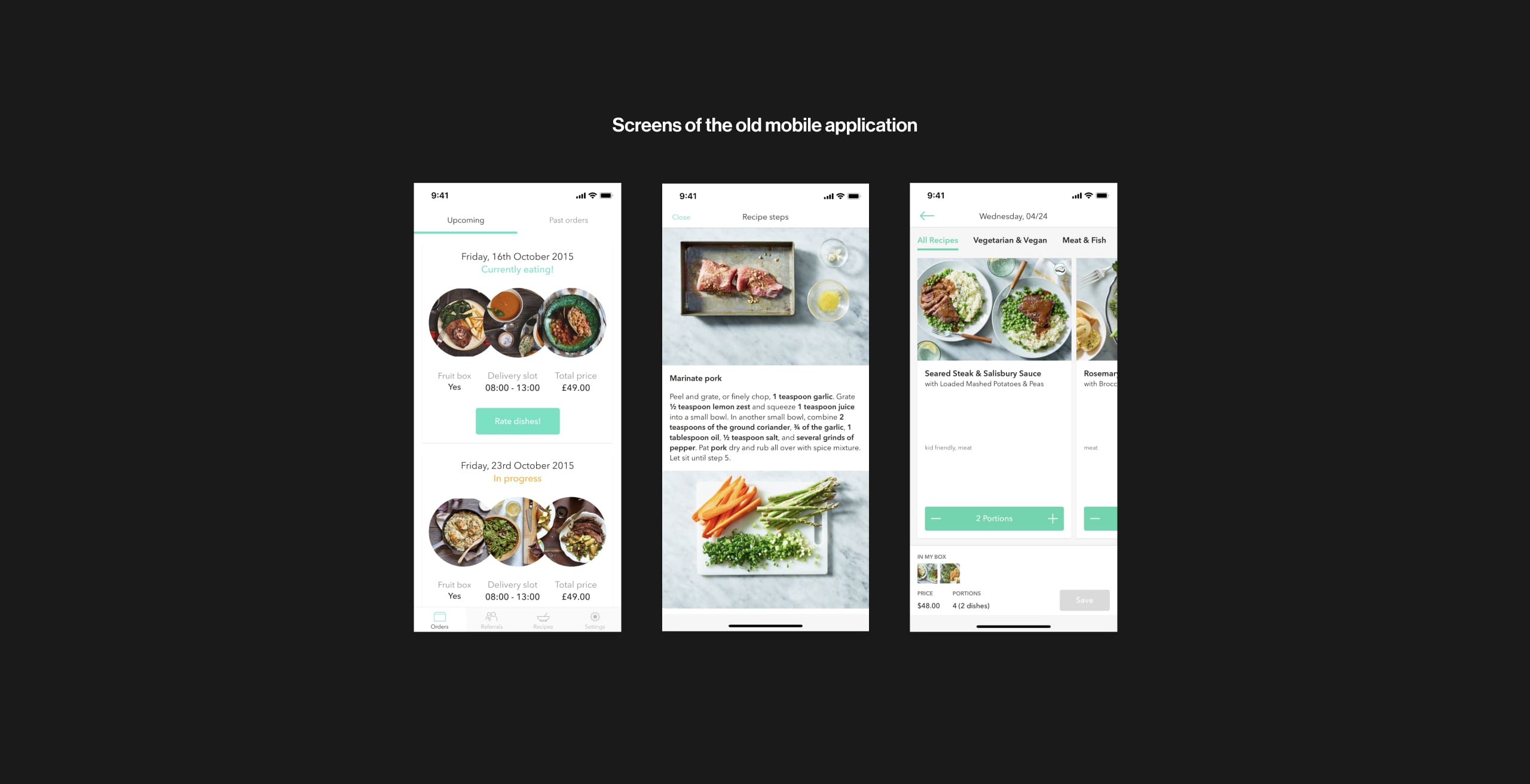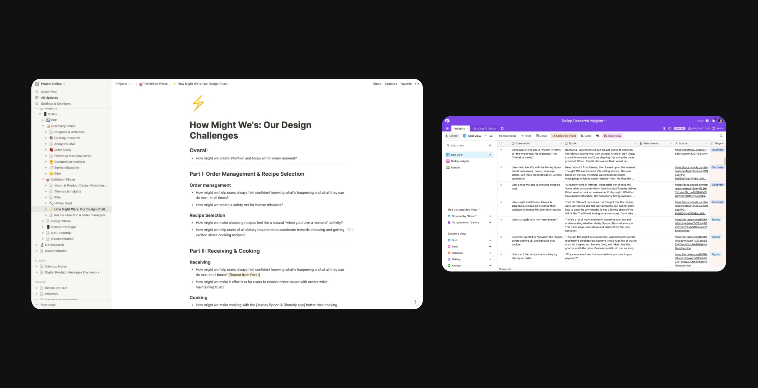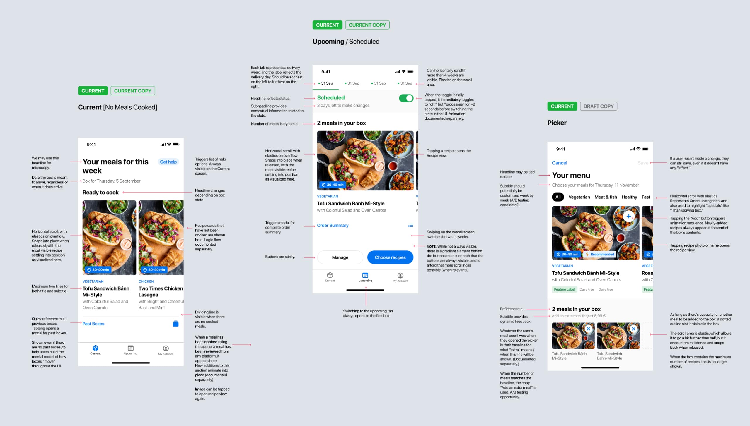 We split our design sprints into 3 phases: Order management & recipe selection, receiving & cooking and lastly signup & account management.